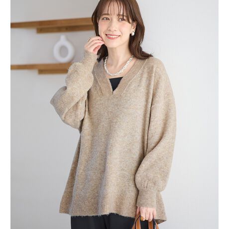 ・Vネックデザインを活かして、インナーに重ねるレイヤードスタイルがおすすめ。