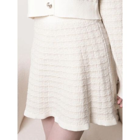・同じ糸と編地を使った《2wayカラーツイードニットカーディガン》とセットアップで着るのがおすすめ!