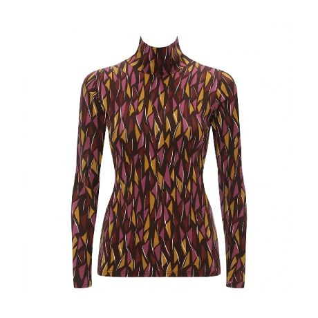 首元が冷えにくいハイネックの10分丈のトップスです。