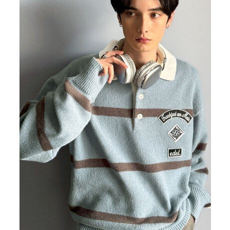 胸元のワッペンが映える、旬なラガーポロデザイン。