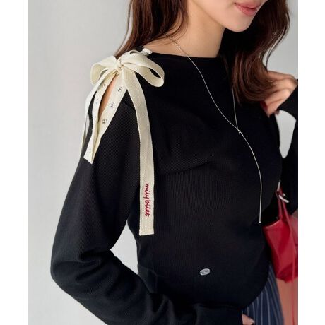 mily bilet刺繍入りの肩リボンが目を惹く大人可愛いカットソー!