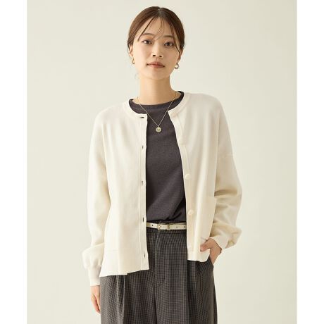 上品さと抜け感を両立する、大人のスウェットライクカーデ
