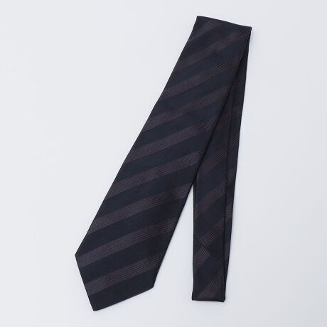 ジャカード織り特有の凹凸感にピンストライプが施されており、シックな印象ながら奥行きを感じさせる1本になっております。