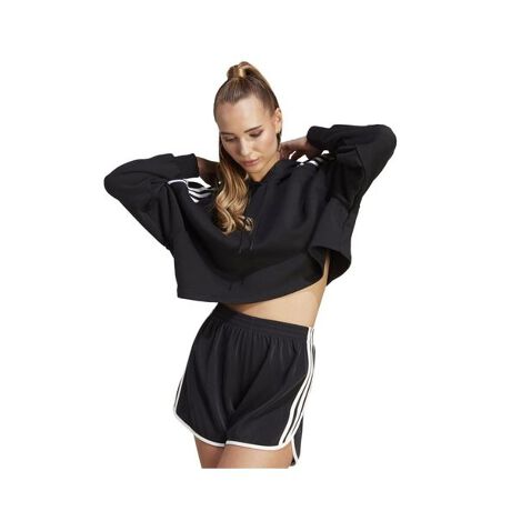 ソフトなコットン混紡素材を使用したアディダスのクロップドパーカーは、快適さとファッション性の両方を追求できるベストチョイス。