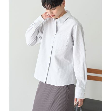 コンパクトな襟と短すぎないクロップド丈がポイントのベーシックシャツ。綿100%のオックス生地で仕立て、透けにくく程よいハリ感があり快適に着用して頂けます。製品洗いを施したこなれた風合いも魅力的。デイリーにはもちろん、オフィスシーンまで幅広く使える上品なトラッドアイテムです。透け感[なし]