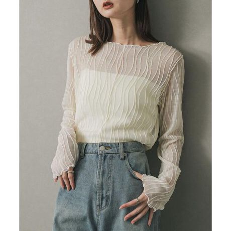 やわらかな風合いと程よい透け感が魅力のシアーカットソー。一枚でさらりと着るだけで、トレンド感のある着こなしが完成します。程よくゆとりのあるシルエットなので、身体のラインを拾いすぎず、快適な着心地。一枚でも使いやすいので、これからの季節にぴったりです。