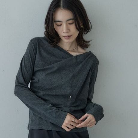 サイドのギャザーがさりげないアクセントとなり、動きのあるシルエットを演出。
