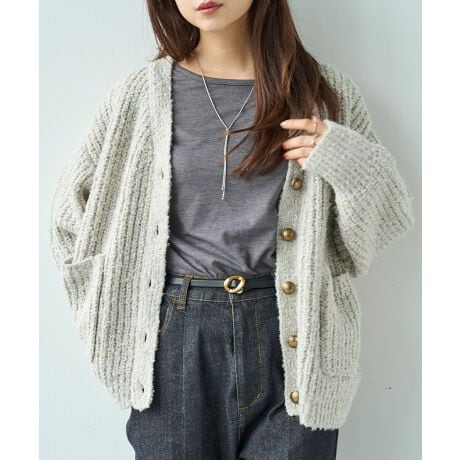もちもちとした柔らかな編地が心地よく、ふんわり優しいぬくもりに包まれるミックスニットカーディガン。
