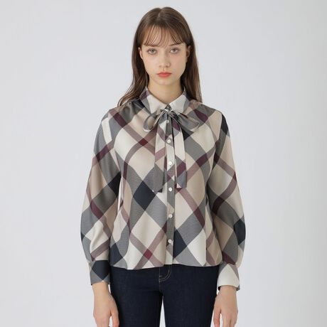 【取扱店舗限定】クレストブリッジチェックサテンプリントブラウス