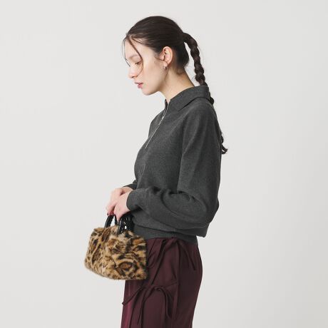 目が詰まったコンパクトでクリアな編地はハーフジップのカジュアルなデザインも品よく見せてくれます。