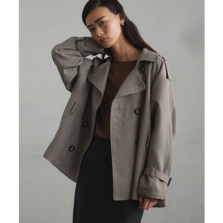ゆったりとしたオーバーサイズシルエットで、今年らしい抜け感をプラスできるショートトレンチコートです。大きめのラペルとダブルボタンがアクセントになり、羽織るだけでトラッドな雰囲気を演出。ヒップにかかる着丈なので、ボトムとのバランスも取りやすく、デイリーに活躍します。