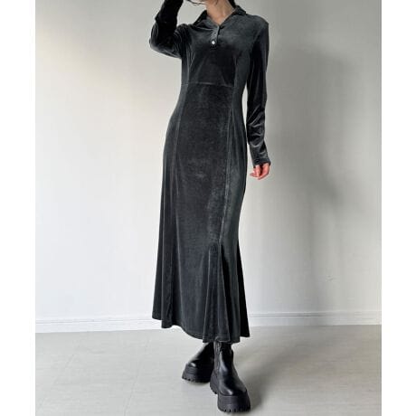 カットベロアポロマーメイドワンピース【ペチスカートセット】