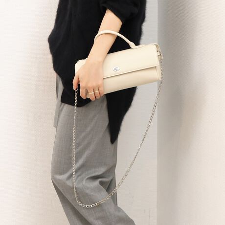 チェーンショルダー付きで使えばトレンド感のある雰囲気、外せば入学式などのオケージョンにも使って頂けるかっちりした雰囲気です。