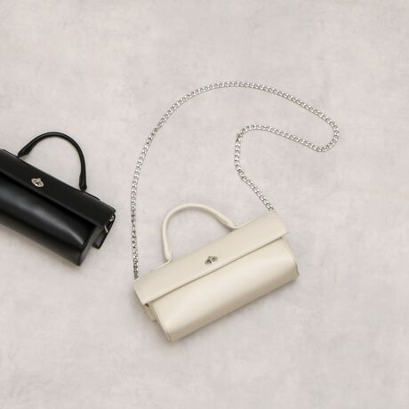 チェーンショルダー付きで使えばトレンド感のある雰囲気、外せば入学式などのオケージョンにも使って頂けるかっちりした雰囲気です。