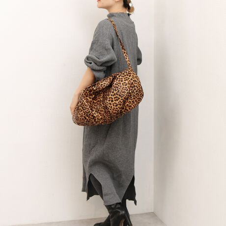 底部分に大きくキャザーを入れてバルーンのように膨らんだフォルムがポイントの手提げバッグ。