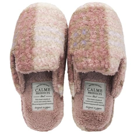カルム スリッパ CALME 通販 ルームシューズ ルームスリッパ ルームサンダル 室内履き 部屋履き 室内スリッパ 前詰まりスリッパ プードルボアチェックスリッパ 室内用 来客用 冬 もこもこ レディース ボア ふわふわ おしゃれ チェック かわいい