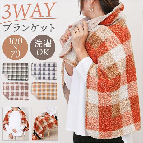 【便利な3way】プードルボアのブランケット。ひざ掛けはもちろん、ボタンで肩掛け、ポンチョ風にも。【ふんわりあたたかな触り心地】表面のくるくるとしたプードルボアと内側のふわふわの毛足の長いボアがリラックスタイムを演出◎【洗濯機で簡単ケア】ネットに入れて洗濯機で丸洗いできるため、いつでも清潔に保てる♪【ギフトにも最適】大切な方へのプレゼントにも♪