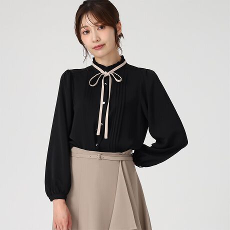 ピンタックと配色リボンをあしらったレトロキュートなブラウス。ほんのりとした透け感のある素材が、コーディネートを爽やかに仕上げます。リボンは取り外しができるので、気分やコーディネートに合わせて2wayの着こなしを楽しめます。■fabric透け感[やや有り]裏地[無し]伸縮性[やや有り]生地の厚さ[薄手]