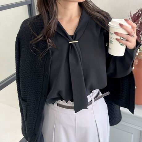 ボウタイが顔まわりを華やかにしてくれるので、オフィスにも休日のお出かけにもぴったりです。