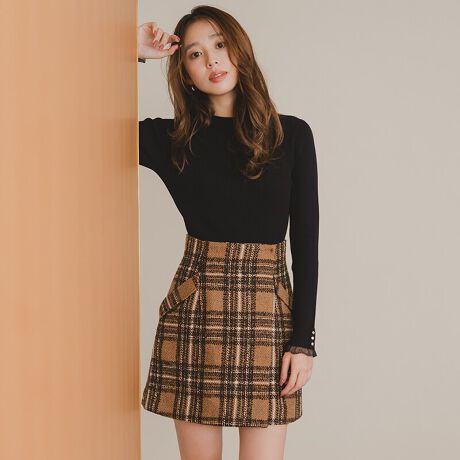 2025秋冬新作 袖シアーフリルベーシックリブニット
