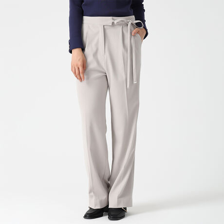 【WEB限定】-2025 Autumn&Winter Item-サイドリボンがフェミニンなきれいめパンツ■design25SSで大人気だったサイドリボンパンツがAW仕様になって登場。暖かみのある素材感で、ニットとの相性も抜群!パンツスタイルもフェミニンに着こなしたい方におススメの1枚です?■detailサイドのリボンがデザインのポイント。センタースリットが脚長効果を演出してくれます。■styleカットソーやブラウス、ニットをインしたスタイリングがおススメです。■fabric透け感[無し] 裏地[無し]伸縮性[有り]生地の厚さ[普通]