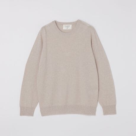 スコットランド製のカシミヤニット、上質な紡毛ニットに多く見られるサドルスリーブを採用しました。