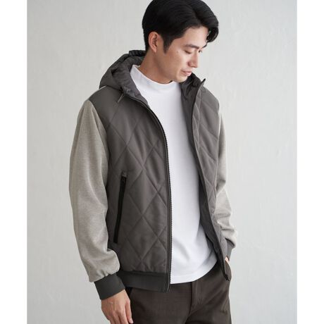 ダイヤキルトの身頃×ジャージの異素材使い。