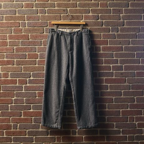 コットンチノパンとウールスラックスの中間的な立ち位置として、気軽に着用できる汎用性に優れた便利アイテム。