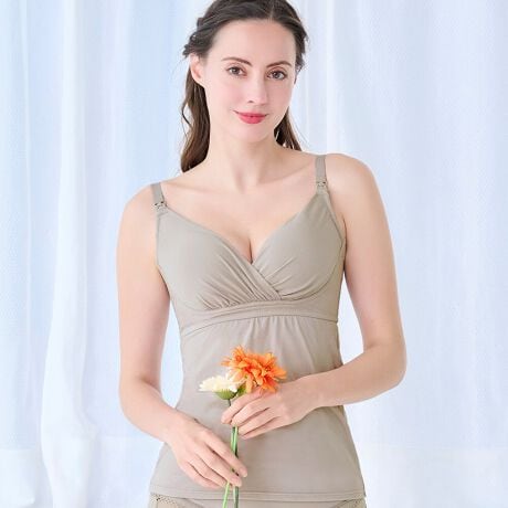 デイリーから産前産後まで長く使える、24時間着用可能なフロントオープンタイプのノンワイヤーブラキャミ。