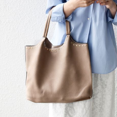 《一部追加予約》【WEB限定】SHIPS any: ポーチ付き スタッズ A4 トート バッグ