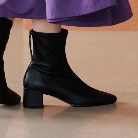ソフトなシープレザーとライニングのストレッチ素材で、吸い付くようにフィットするショートブーツ。