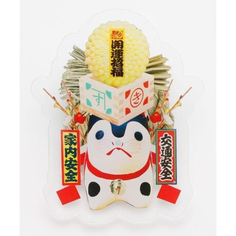 [型番:7SJP5304-2025]日本の縁起物や祝いものを詰め込んだ、賑やかな「開運来福」スマホグリップ。スマホの後ろに取り付けて落下防止に、また動画などを見る際のスタンドとしてもお使いいただけます。折り畳みが可能。
