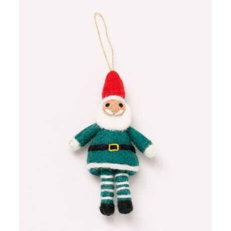 [型番:LNBP5308-2025]ほっこりと温かみのある羊毛フェルトでつくられた、サンタクロースのクリスマスオーナメント。ズボンがしましまで個性豊かなサンタクロースです。※一点一点手作りのため、サイズや柄の出方に個体差がございます。
