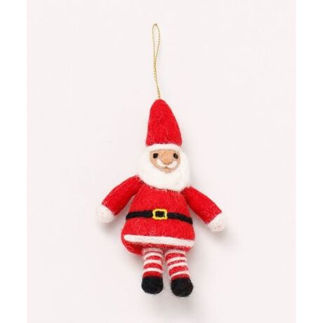 [型番:LNBP5308-2025]ほっこりと温かみのある羊毛フェルトでつくられた、サンタクロースのクリスマスオーナメント。ズボンがしましまで個性豊かなサンタクロースです。※一点一点手作りのため、サイズや柄の出方に個体差がございます。
