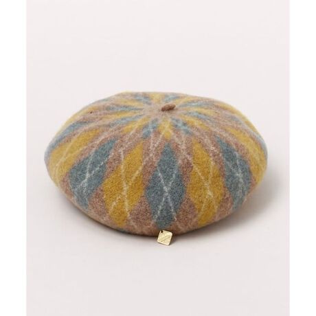 [型番:LCOP5315-2025]ダイヤ状の大きめアーガイル柄が目を引くデザインのベレー帽。温かみのある素材感で、サイズ調節も可能で使いやすいです。サイズ調整不可能