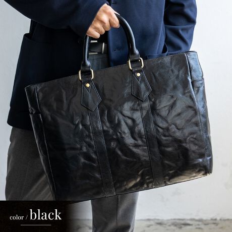 スーツにもスマートカジュアルにも馴染む本革バッグ。