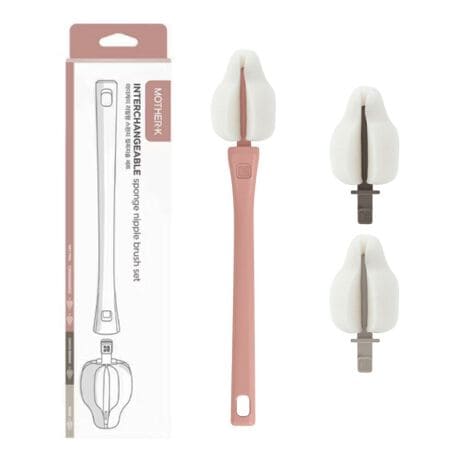 マザーケイ 哺乳瓶 乳首ブラシセット(インディピンク)ブラシヘッド4個付き