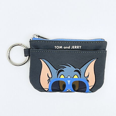 サングラスをかけたトム、ジェリー、タフィーがひょっこり覗きこんでるようなコンパクトサイズのミニポーチです。カラビナ付きでバッグにも簡単に取り付けが可能!イヤホンやリップ、小さな鍵などバッグの中で無くなりがちな小物をまとめて収納可能◎