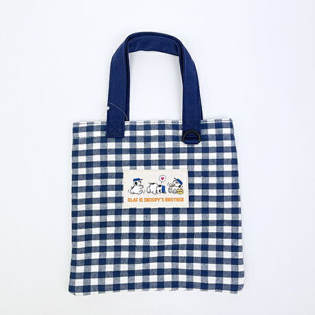 スヌーピーのきょうだい、オラフのフラットトートです♪ネイビーチェックのシンプルデザイン♪ほのぼのしたオラフがとっても可愛い♪同シリーズで集めたくなっちゃう☆彡