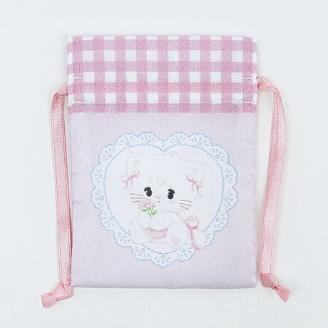 SNSなどで話題の「mikko illustrations」の巾着です。チェック柄が可愛いデザインの巾着に『ムース』のイラスト入り◎小さめのコスメやアクセサリー、お菓子などが入るサイズ♪