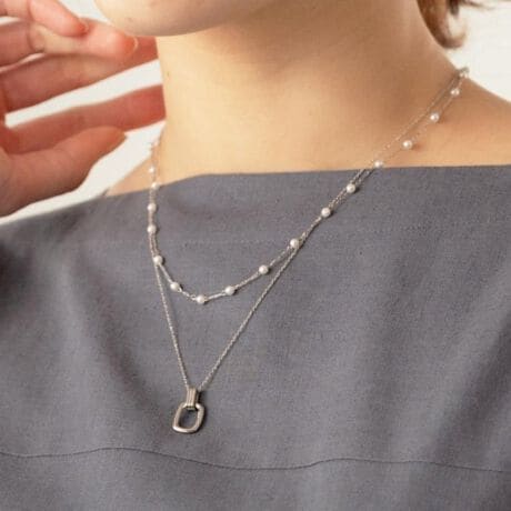 シンプルながらも洗練されたデザインが魅力のレイヤードネックレス。