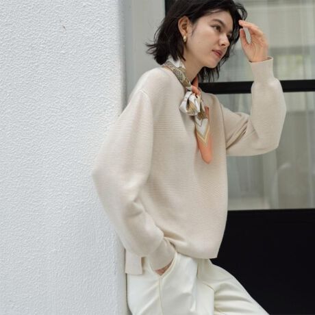 ・ややゆとりを持たせたリラクシーなシルエットのボートネックニット。