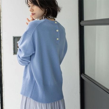・ボタンデザインをアクセントに、シンプルながら後ろ姿も素敵なミドルゲージニットに仕上げました。