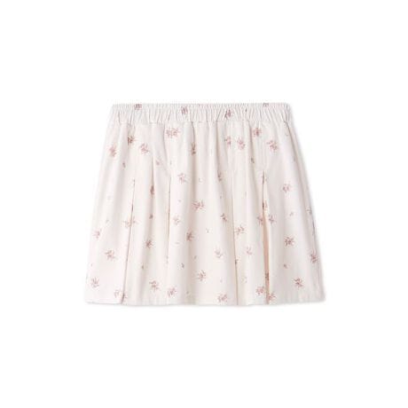 伸縮性のある綿素材を使用したルームウェアシリーズです。幅広のプリーツを入れて、スカートのようなシルエットで仕上げたショートパンツはガーリーなカレッジテイストをお楽しみいただけます。色はキュートな小花柄プリントのピンクと、合わせやすい無地のアイボリー、カジュアルに楽しめる杢グレーの3色をご用意しました。同シリーズのロングTシャツに合わせたり、同時期に展開するジェラートボーダーシリーズとのコーディネートもおすすめです。