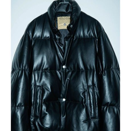 ・マット質感のレザーとステッチを減らしたクリーンなデザインで、ダウンジャケットでも上品な印象