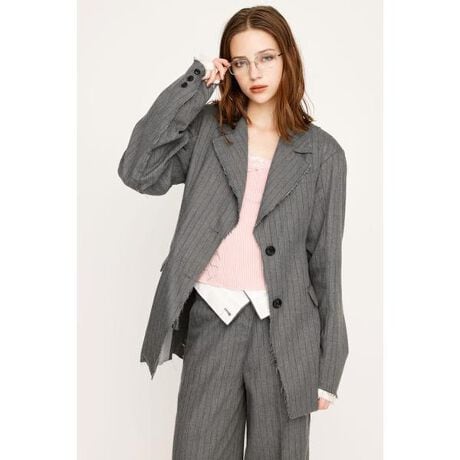【WAIST SHAPE CUT OUT JK】■POINT:切りっぱなし風のカットオフデザインがエッジの効いたジャケット。テーラードジャケットのきちんと感とリメイク風の遊び心を両立させたアイテムです。肩回りは程よいオーバーサイズなので、中に厚手のインナーを着用しやすくロングシーズン活躍します。■DETAIL:布端は切りっぱなし仕様で、袖裾から裏地をあえて見せたリメイク風デザイン。ウエストは程よいシェイプシルエットで、スッキリとした印象でご着用いただけます。ストライプ柄のグレーと無地ブラックの2色展開です。■STYLING:同素材シリーズのパンツ(030IAZ31-1641/2WAY CUT OUT MANNISH PT)とセットアップでの着用が一押し。カジュアルにプリントTシャツを合わせたり、あえてレディライクなレースアイテムやミニ丈のボトムスとの合わせもおすすめです。■FABRIC/MATERIAL:程よい厚さのスーツ地素材を使用しております。■透け感:なし■光沢感:なし■伸縮性:なし■裏 地:あり[注意事項]※画像の商品はサンプルです。実際の商品と仕様、加工が若干異なる場合があります。※画像の商品は光の照射や角度、お使いのモニター環境により、実物と色味が異なる場合がございます。※着用、お取り扱いの際は、アテンションタグをご確認ください。※一部予約商品につきましては生産上の都合によりお届け予定日や店頭発売と前後する場合もございます。※追加生産商品は、一部の店舗、通販で販売中の場合がございます。予めご了承下さい。