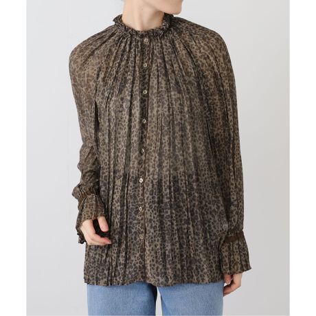 ピンクとブラックはドットジャガード、レオパード柄は軽やかなジョーゼット素材を使用し、いずれもランダムプリーツ加工で上品な雰囲気を演出します。