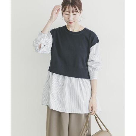 一枚で旬のレイヤードスタイルが完成。ふんわり柔らかなニットと爽やかなストライプシャツの異素材ミックスが、着こなしに奥行きと華やかさをプラスします。シンプルながらもデザイン性が高く、デニムやパンツ、スカートなどどんなボトムスとも相性抜群。忙しい朝でもこれ一枚でサマになる、快適さとおしゃれを両立した大人にぴったりのアイテムです。