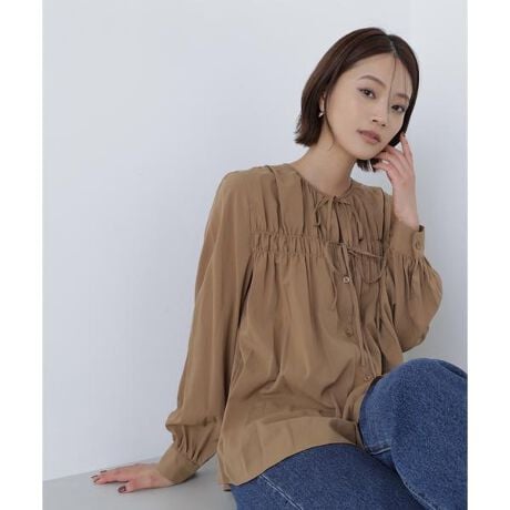 華奢なリボンがポイントのブラウス。セットインの肩幅がシルエットをすっきり見せてくれます。リボンをほどいて羽織りにも使えるデザインなので、季節の変わり目にあると便利なアイテムです。<素材>落ち感のあるしなやかな素材を使用しています。<詳細>仕様・前ボタン裏地・なし透け感・なし / 伸縮性・なし生地の厚さ・普通※モデルの着用画像の場合、光の当たり具合により、実際の色味と異なって見えることがございます。色味は、商品単体の画像をご参照ください。