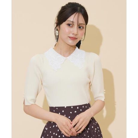 レースカラーが華やかな上品トップス【Design】・リボン柄があしらわれた繊細なレース襟の上品リブニット♪・WILLSELECTIONらしい上品でフェミニンなムードを演出してくれます。・リブニット素材が身体のラインを美しく見せ、すっきりとしたシルエットに。・袖口にはさりげないパールボタンをあしらい、細部までこだわりました。・スカートにもパンツにも合わせやすく、幅広いコーデに活躍◎・デートやおでかけ、通勤などのきちんと感が欲しいシーンにもぴったりです!【Fabric】・なめらかで柔らかな肌触りと適度なハリ感を両立。・ご自宅でお手入れが出来るのも嬉しいポイント♪・エクリュ、ブラウン、ブラックの3色展開となります。【Care】手洗い可能